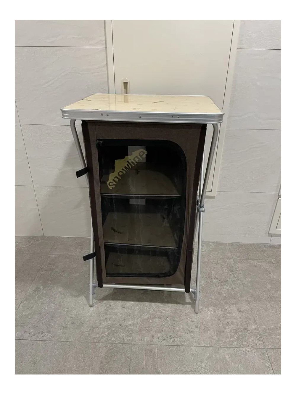 스노우라인 멀티 캐비넷 제품입니다 가방은 분실해서 따로 맞는거 구입하셔야되고 위쪽 찢어짐 잇어서 실밥으로 꿰매심될거같아요