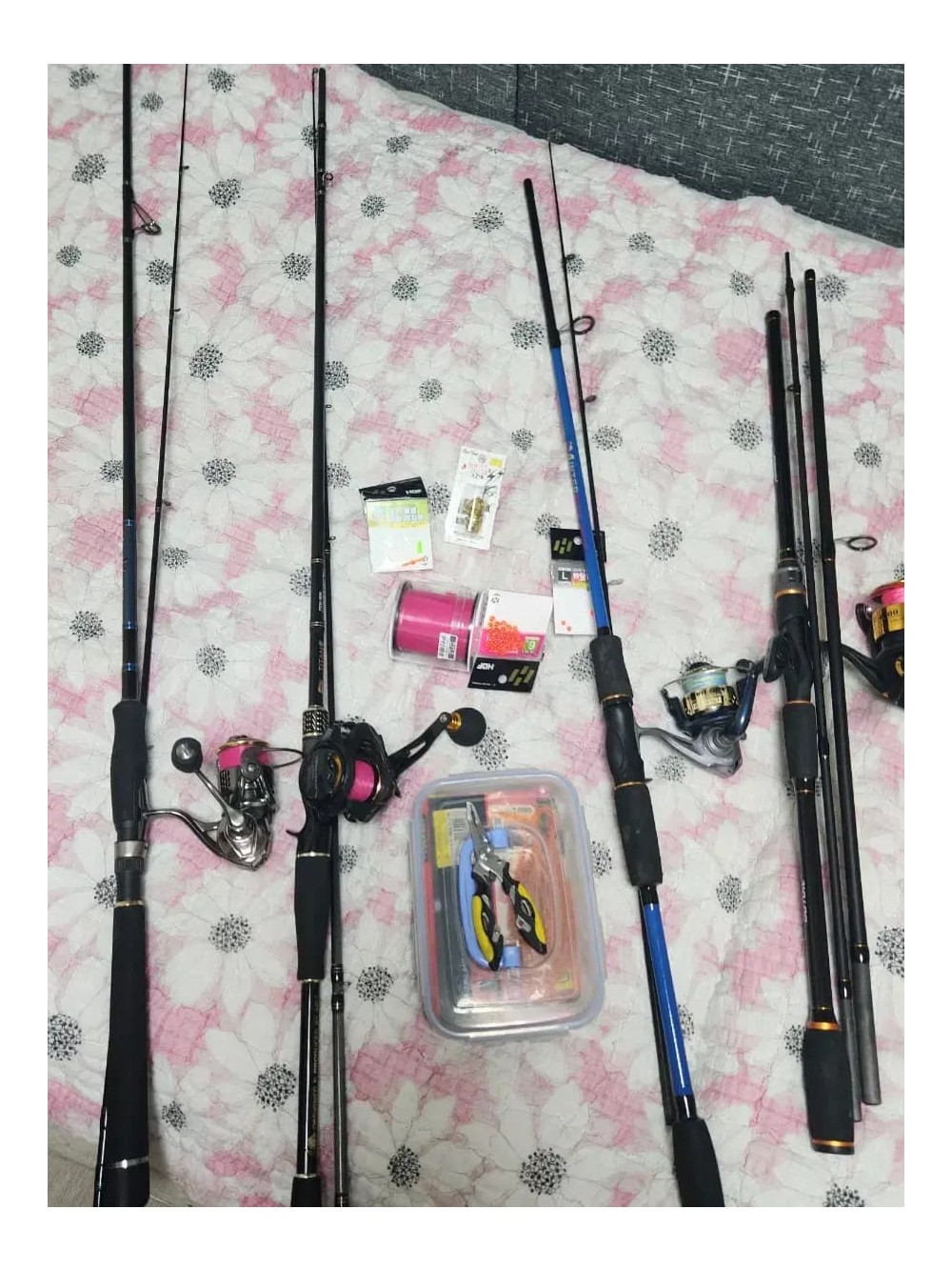 왼쪽에있는거 2개는 깨끗합니다 오른쪽두개는 망가진낚시대지만 사용가능합니다 그리고 가운데 있는거 도 포함으로 다드립니다 바로 낚시 가능 네고는 최대 5만가능합니다 많이 찔러주세요 낚시대 케이스4개는 서비스 입니다 망가진낚시대는 맨 마지막사진에 잘 나와있어요